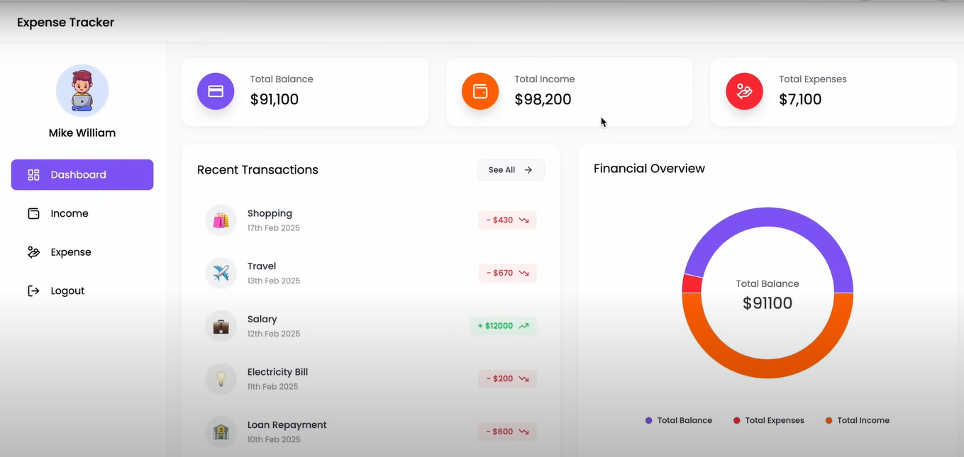 A full-stack expense tracker app to monitor daily and monthly expenses with charts and data filtering.