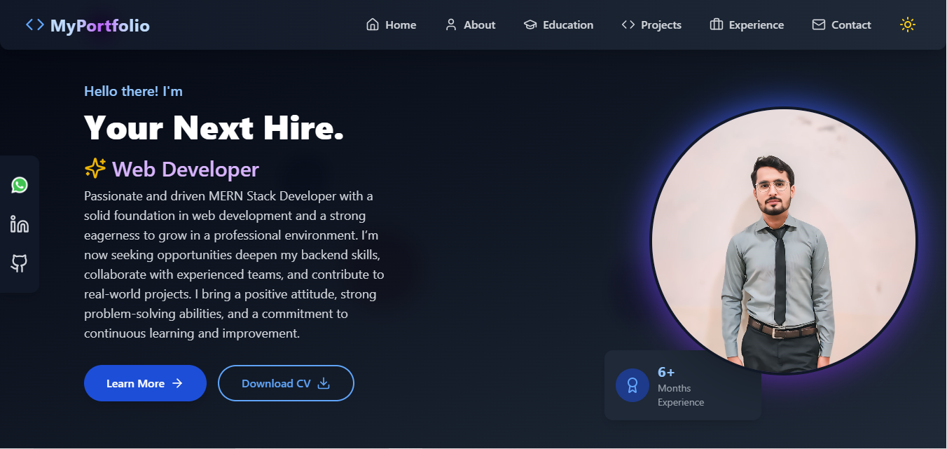 Passionate and driven MERN Stack Developer with a solid foundation in web development and a strong eagerness to grow in a professional environment. I’m now seeking opportunities deepen my backend skills, collaborate with experienced teams, and contribute to real-world projects. I bring a positive attitude, strong problem-solving abilities, and a commitment to continuous learning and improvement.